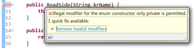 그러나 enum의 경우에는 일반 클래스와는 달리 private으로 정의해야 합니다.