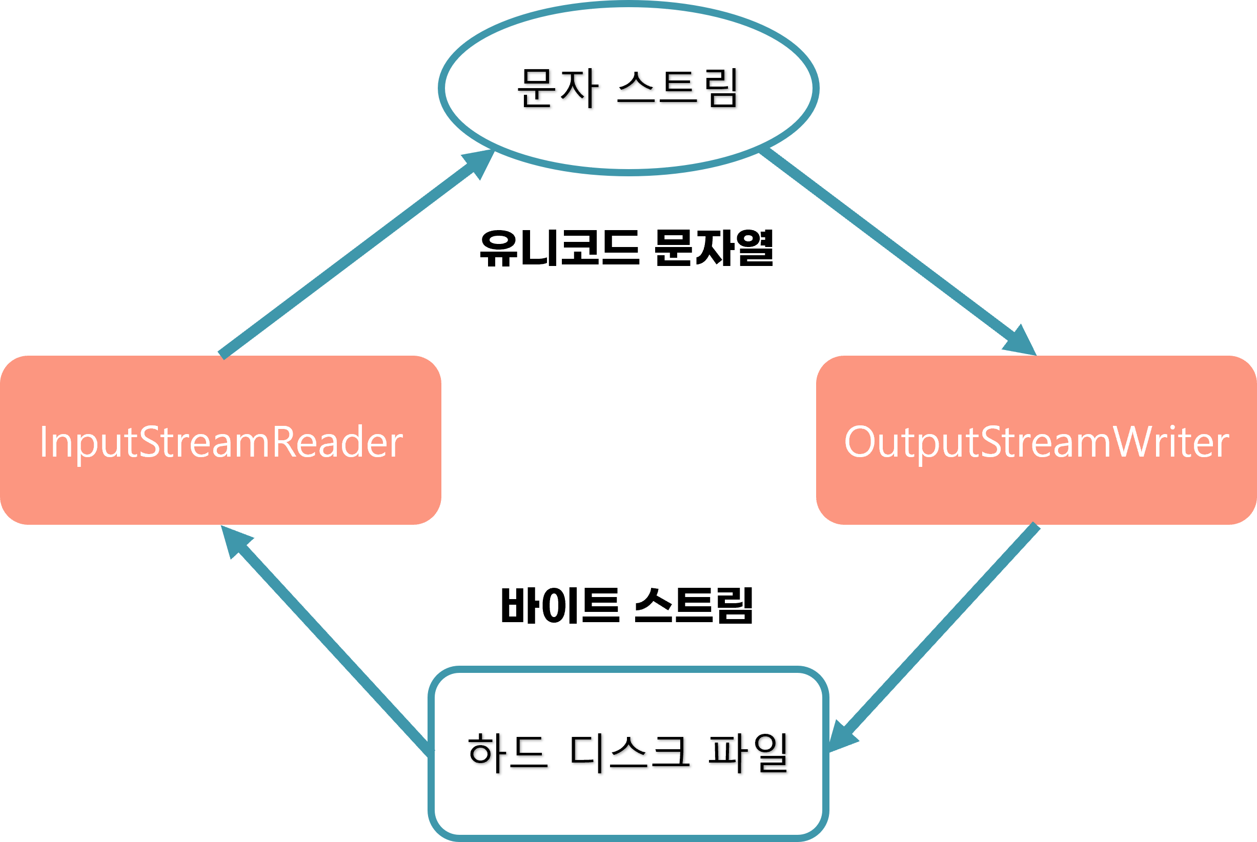이 두 클래스는 Character 스트림의 세계와 Byte 스트림의 세계를 연결해주는 bridge 역할을 해줍니다.
