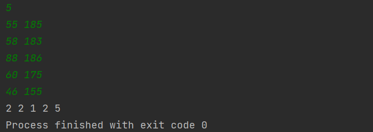 pairs[i] = new Pair(sc.nextInt(), sc.nextInt()); // 몸무게, 키 입력