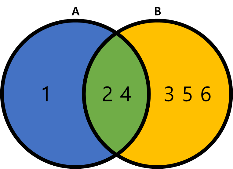 문제에 따르면 A 집합과 B 집합이 다음과 같은 형태로 존재할 때
