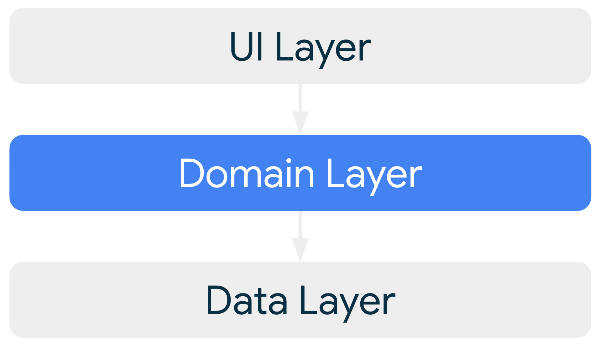 도메인 레이어는 복잡한 비즈니스 로직, 또는 여러 ViewModel에서 재사용되는 간단한 비즈니스 로직의 캡슐화를 담당한다. 모든 앱에 이러한 요구사항이 있는 것은 아니므로 이 레이어는 선택사항이다. 따라서 복잡성을 처리하거나 재사용성을 선호하는 등 필요한 경우에만 도메인 레이어를 사용해야 한다.