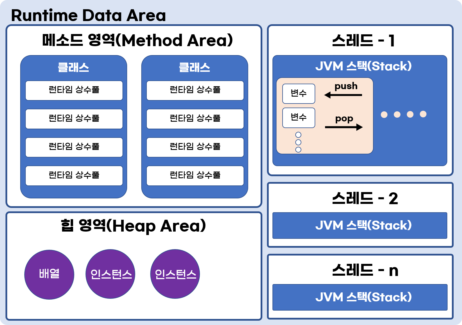 생성된 인스턴스는 힙 영역에 각자 독립된 메모리 공간을 차지하고, 자신만의 필드를 가집니다.